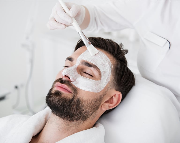Professional facials using branded products to cleanse, exfoliate and brighten men’s skin tone.